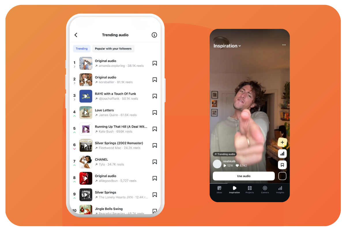 Browse through the top 50 tracks that have seen a sharp rise in reels usage over the past three days for inspiration.To find this list, go to Settings > Creator Tools > Trending Audio.